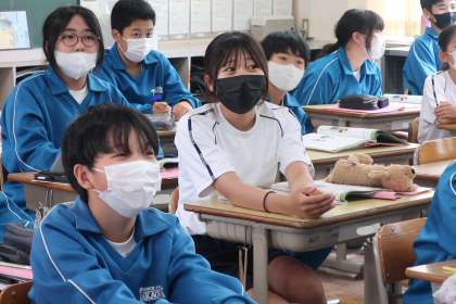 定期テストが返却され、解説を聞いた後、テスト直しに取り組んでいました。