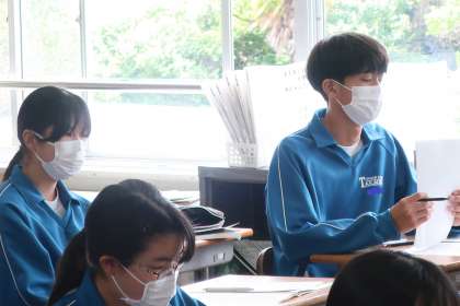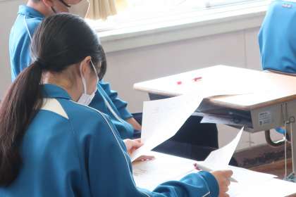 定期テストが返却され、解説を聞いた後、テスト直しに取り組んでいました。