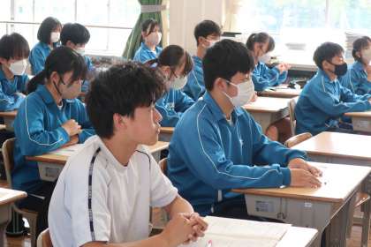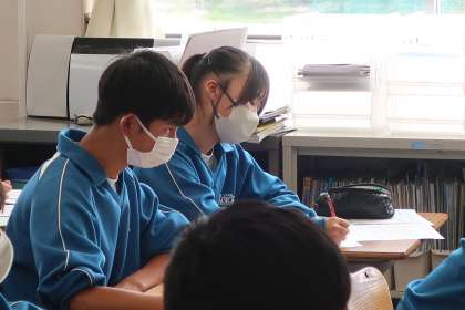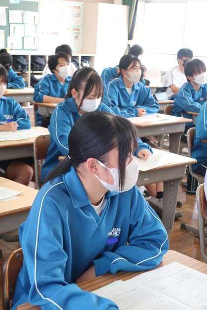 定期テストが返却され、解説を聞いた後、テスト直しに取り組んでいました。