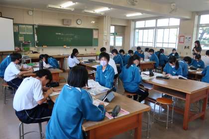 「栄養バランスを目で見て判断しよう」をテーマに、3食分の料理の写真からどんな栄養が取れ、バランスのよいものかどうかを判断していました。