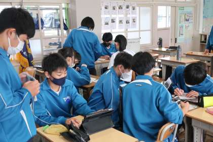 写真は、3年1組の様子です。