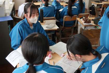 午後の総合的な学習の時間には、班別研修の事業所へのの交通手段、クラス別研修時の注意事項などの最終確認を行っていました。