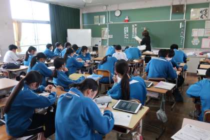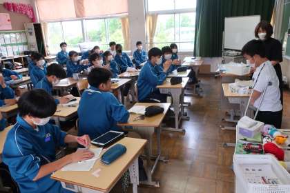 午後の総合的な学習の時間には、班別研修の事業所へのの交通手段、クラス別研修時の注意事項などの最終確認を行っていました。