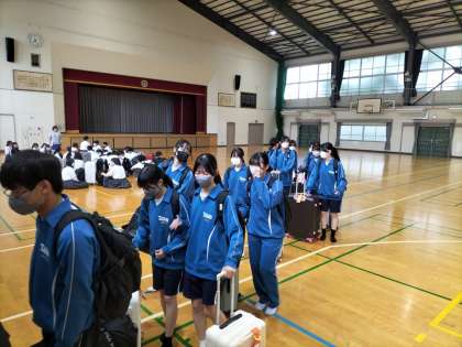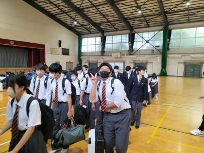 見送りの先生たちに「行ってきます!」のあいさつをして、いざ出発です。