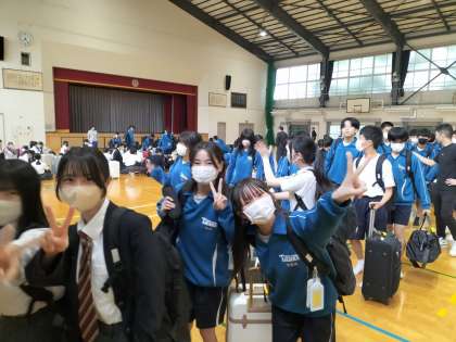 見送りの先生たちに「行ってきます!」のあいさつをして、いざ出発です。