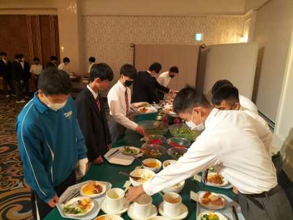 午前の研修、午後のディズニーに備え、しっかりと食べていました。