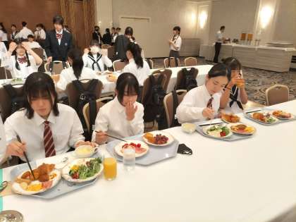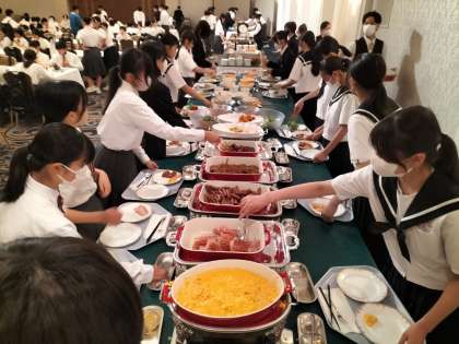 午前の研修、午後のディズニーに備え、しっかりと食べていました。