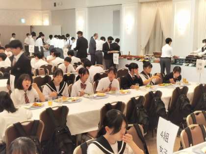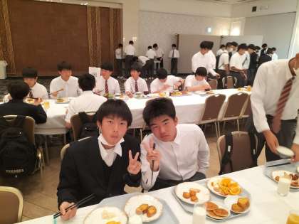 午前の研修、午後のディズニーに備え、しっかりと食べていました。