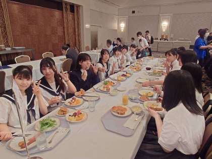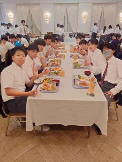 午前の研修、午後のディズニーに備え、しっかりと食べていました。