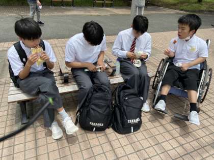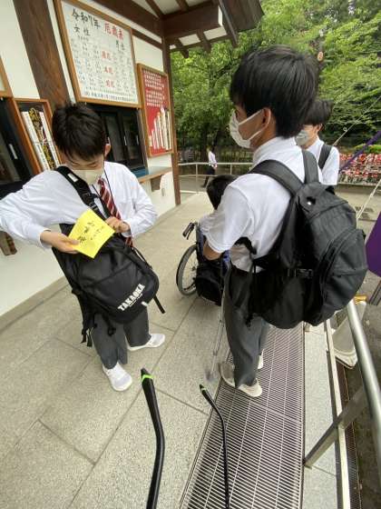 6/9 3年 修学旅行 153 公開日 2025/06/09 更新日 2025/06/09 各学年から 企業訪問の後、ディズニーランド入園までの時間を少しでも確保しようと、昼食も公園で済ませていました。 目的地であるお寺に到着し、お目当ての御朱印をゲットです。