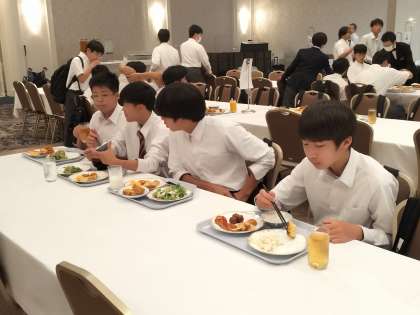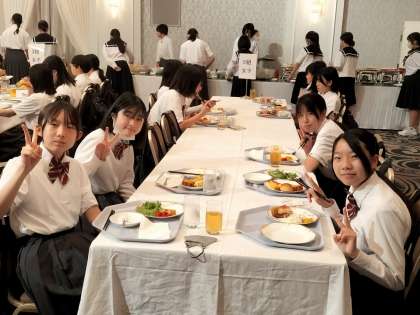 ホテルの豪華な食事も、これで最後。名残惜しそうに味わっています。