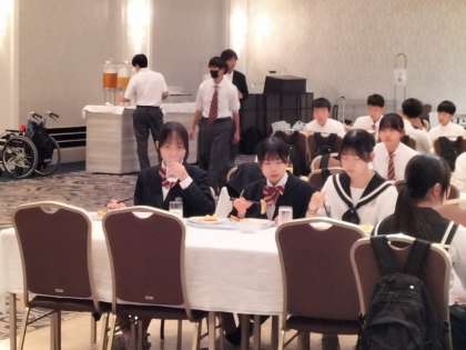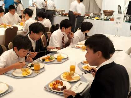 ホテルの豪華な食事も、これで最後。名残惜しそうに味わっています。