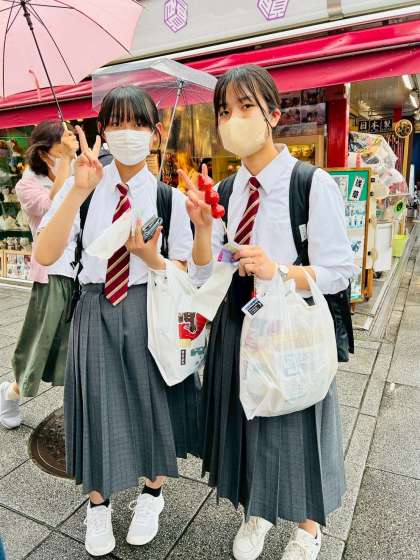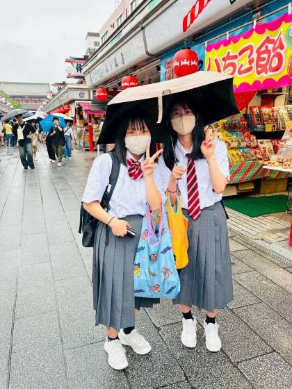 浅草でもんじゃ焼きを堪能したあと、浅草寺・仲見世を散策しています。