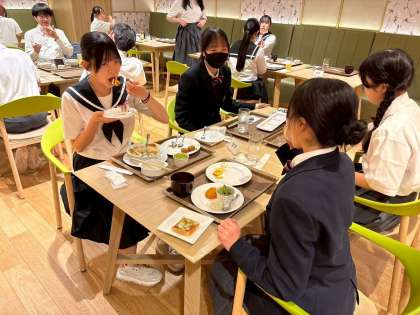 お台場散策でクラスの仲間と楽しく過ごしています。