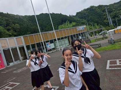 学校帰着前、最後の休憩場所の静岡SAで、半日ぶりに5クラスが集まりました。