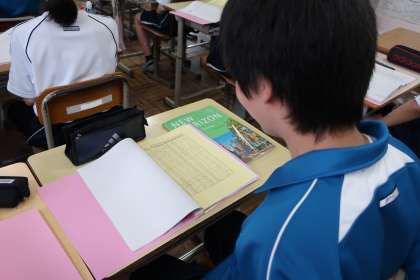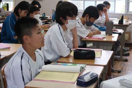 単元のまとめのテストが返却され、「学習に向かう姿勢が素晴らしい」と声をかけられ、その後のリピートの活動も元気よく取り組んでいました。