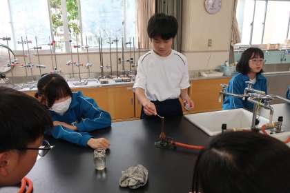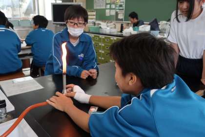 今後の実験で使用するガスバーナーの使い方について、安全を意識しながら学習していました。