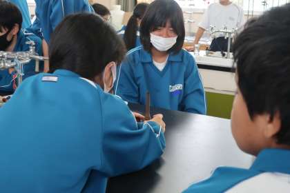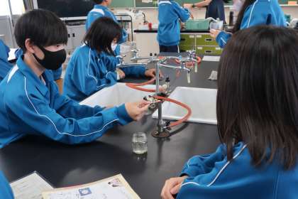 今後の実験で使用するガスバーナーの使い方について、安全を意識しながら学習していました。