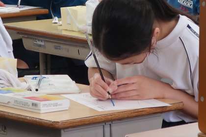 「絵の具の具合と平塗りの仕方、片付け方をマスターしよう」をテーマに、作品づくりの基礎を学んでいました。