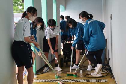 6/12 3-45 最後は3年生が… 3 公開日 2025/06/12 更新日 2025/06/12 各学年から 2泊3日の修学旅行を終えた3年4・5組の体育の授業の様子です。 来週から始まる水泳の学習に向け、最終の環境整備です。最高学年である3年生が責任をもって取り組んでくれています。