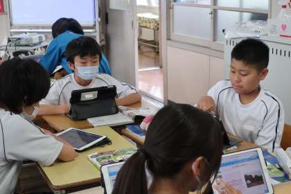 「世界の人々の暮らし」についての学習で、「雪や氷の中で暮らす人々」、「寒暖差の激しい土地で暮らす人々」、「温暖な土地に暮らす人々」について、グループでの調べ学習に取り組んでいました。