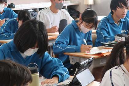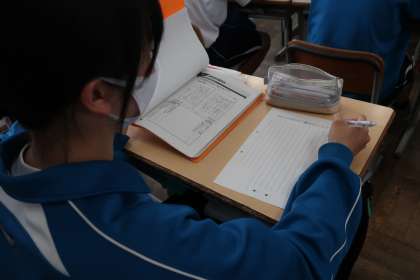 3日間の職場体験学習を終え、お世話になった事業所へお礼の手紙を書いていきます。今回は、感謝の気持ちや経験から学んだことをどう伝えるか、そのポイントを学んでいました。