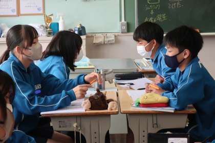 「電池の仕組みをイオンを使って考えよう」をテーマに、実験やこれまで学習してきたことをもとに、仲間と考えを説明し合っていました。