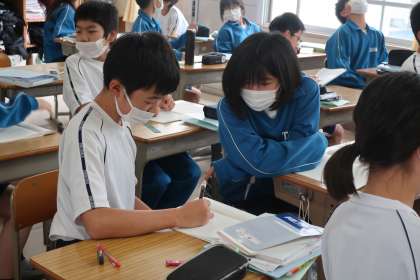 「文字を使った式の表し方」の学習です。小学校までに解けていた問題を中学校バージョンに置き換え、公式の意味や式の立て方を理論的に学んでいました。
