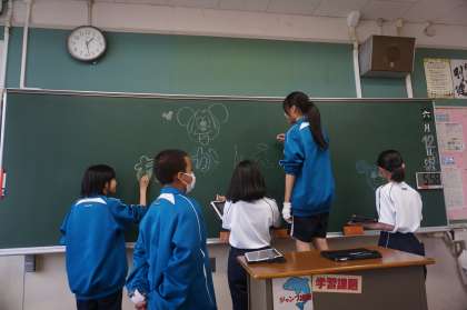 3年生の喜ぶ顔を思い浮かべながら、2年後、自分たちも楽しい修学旅行にしようという気持ちも書き込んでいるようでした。