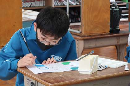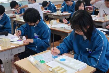 「指定された比率で混色し、平塗りをしよう」をテーマに、作品づくりの基礎的な技能を身につけていました。