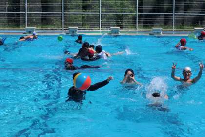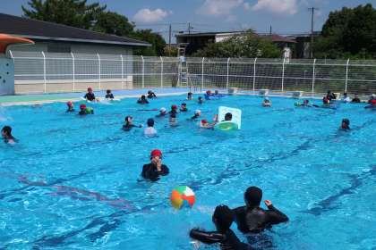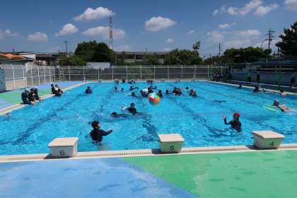 水泳の学習が始まりました。中学校でのプールに慣れ、水泳の学習を充実したものにするため、まずは水慣れからスタートです。