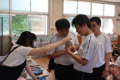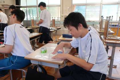 「万華鏡をつくろう」をテーマに、作品づくりに没頭していました。後輩の活動をやさしくサポートする先輩の姿が印象的でした。
