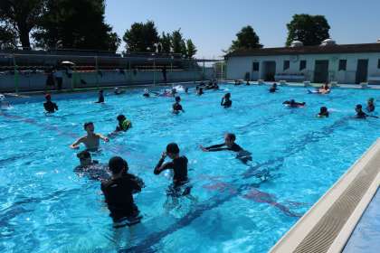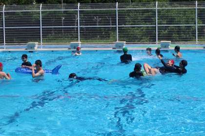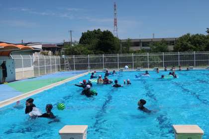 水泳の学習が始まりました。中学校でのプールに慣れ、水泳の学習を充実したものにするため、まずは水慣れからスタートです。