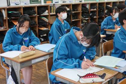 文章から文字式をつくる学習です。小学校時代に解けていた問題が一気に難しくなる瞬間です。必死に身につけようとしている姿が印象的でした。