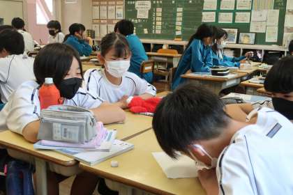 6/20 1-3 メモリーツリー 4 公開日 2025/06/21 更新日 2025/06/21 各学年から 1年3組の理科の授業の様子です。 「いろいろな生物」の単元の復習として、メモリーツリーを活用してキーワードを関連付けながらまとめていました。