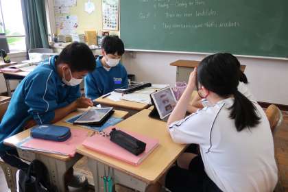 長文読解に取り組んでいました。日本語訳にするだけでなく、内容に対しての自分の意見を英語で作成していました。