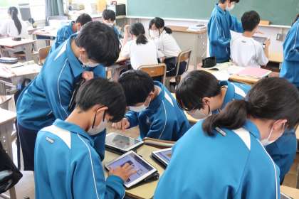 6/23 3-3 意見も英語で… 4 公開日 2025/06/23 更新日 2025/06/23 各学年から 3年3組の英語の授業の様子です。 長文読解に取り組んでいました。日本語訳にするだけでなく、内容に対しての自分の意見を英語で作成していました。