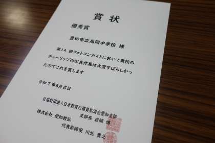 今回、「第14回フォトコンテスト」でチューリップの写真作品(写真上)を応募したところ、優秀賞をいただきました。