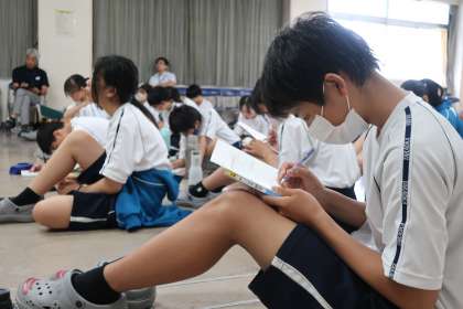 今回は豊田市博物館から学芸員さんをお招きし、「自分たちの説と博物館からの情報を関連付けて考えよう」をテーマに、古代の豊田の様子と他地域とのつながりを考えていました。