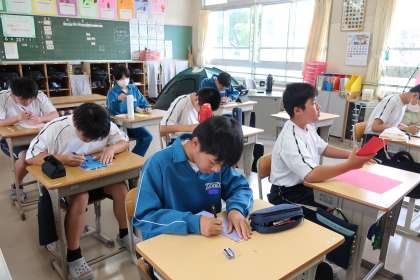 短冊に願いを書き、七夕の飾りつけに取り組んでいました。