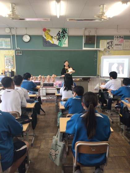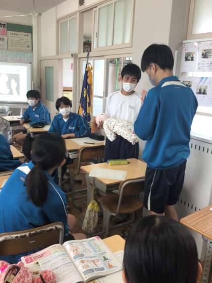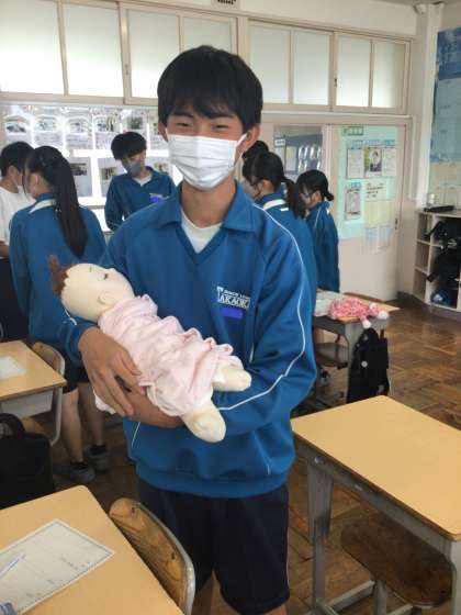 男女の体の変化、月経・妊娠の仕組み、胎児の成長、性感染症の種類やその予防などを学んだあと、赤ちゃん(模型)の抱っこ体験を通して、10代の妊娠を出産の社会問題から親になることの責任や意味を考える機会となりました。