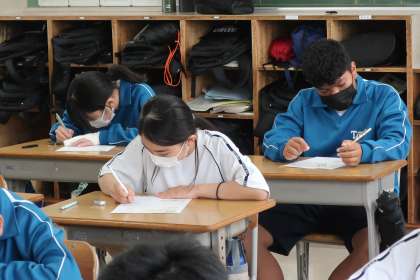 これまでの学習の定着度を確認するため、単元のまとめのプリントに取り組んでいました。