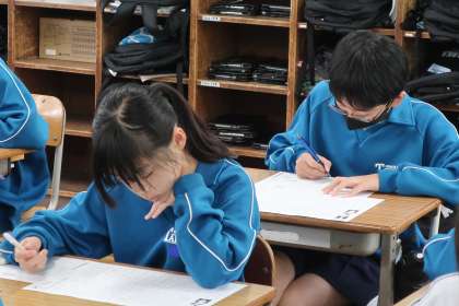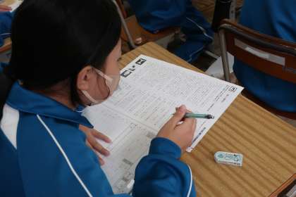 これまでの学習の定着度を確認するため、単元のまとめのプリントに取り組んでいました。