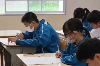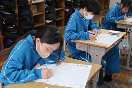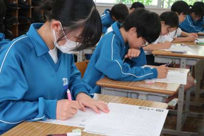 これまでの学習の定着度を確認するため、単元のまとめのプリントに取り組んでいました。
