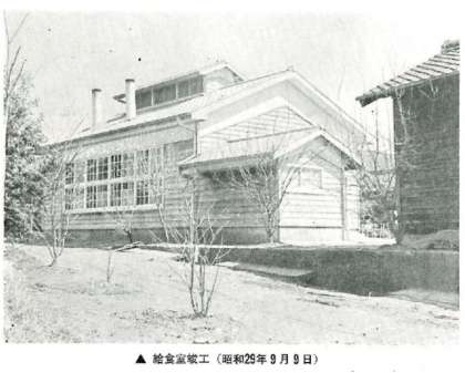・上…給食室竣工(昭和29年9月9日)