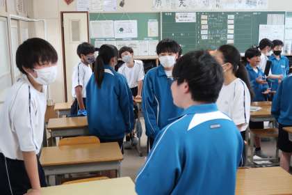 朝の活動時に行われた「たかまるタイム(第10回)」・1年生の様子です。