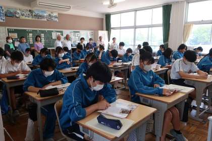 昨日の午後、民生児童委員さんや主任児童委員さんらにご来校いただき、授業の様子を参観していただきました。