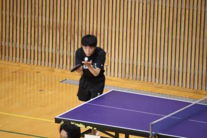 写真は、スカイホール豊田で行われた卓球部の大会、個人戦の様子です。