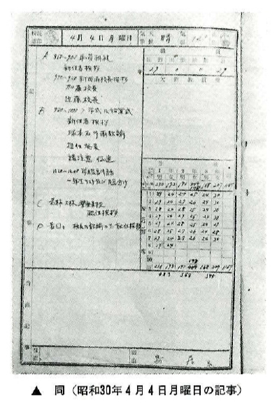 ・下…学校日誌の記事(昭和30年4月4日 月曜日)
