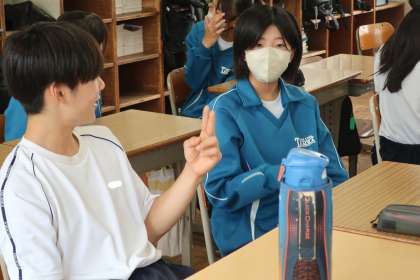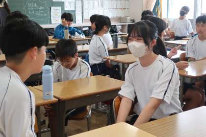 「1分間スピーチ」に取り組んだ今回のポイントは「うなずいて聴く」で、「夏休みに楽しみにしていること」などをテーマに、お互いのスピーチを聞きました。